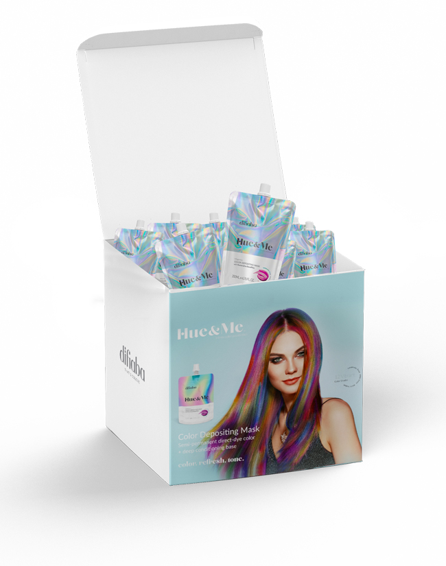 Una tecnología revolucionaria y una herramienta creativa, HUE & ME combina el poder reparador de nuestro Inulin BondPlex, que reconstruye la estructura interna del cabello, con nuestros pigmentos de alta definición, permitiéndote crear INFINITAS POSIBILIDADES DE COLOR. HUE & ME es la primera mascarilla que construye enlaces, deposita color y está diseñada para inspirar al artista que llevas dentro.